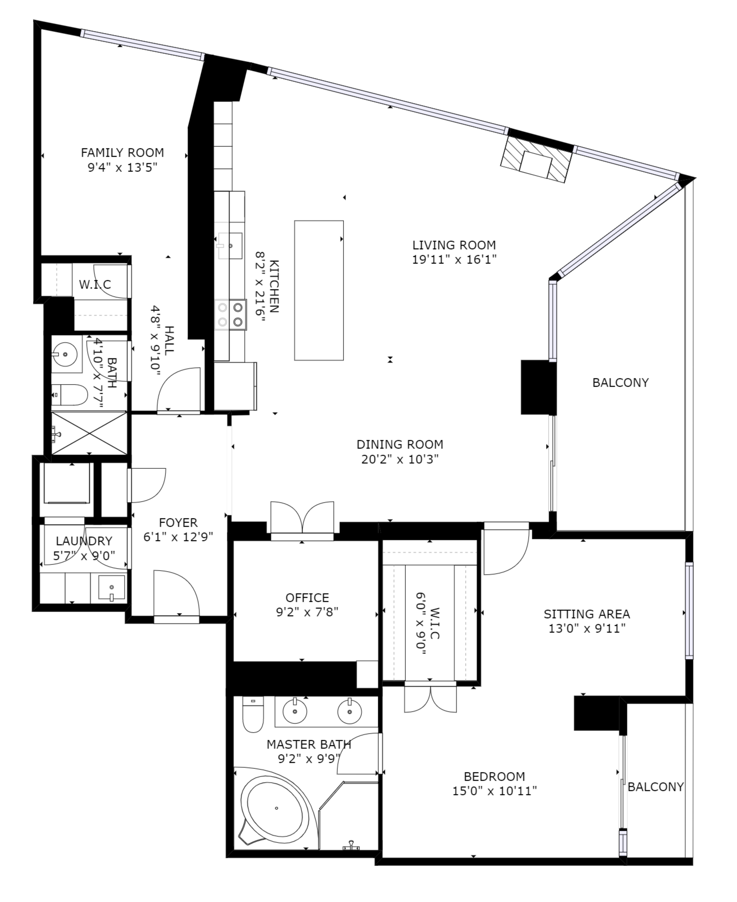 The luxurious master bedroom boasts its own private west facing balcony, a large separate sitting room, remote black out blinds, walk in closet and a 5 piece ensuite equipped with Jacuzzi tub for two, stunning glass enclosed shower stall and double sinks set in a granite counter top.