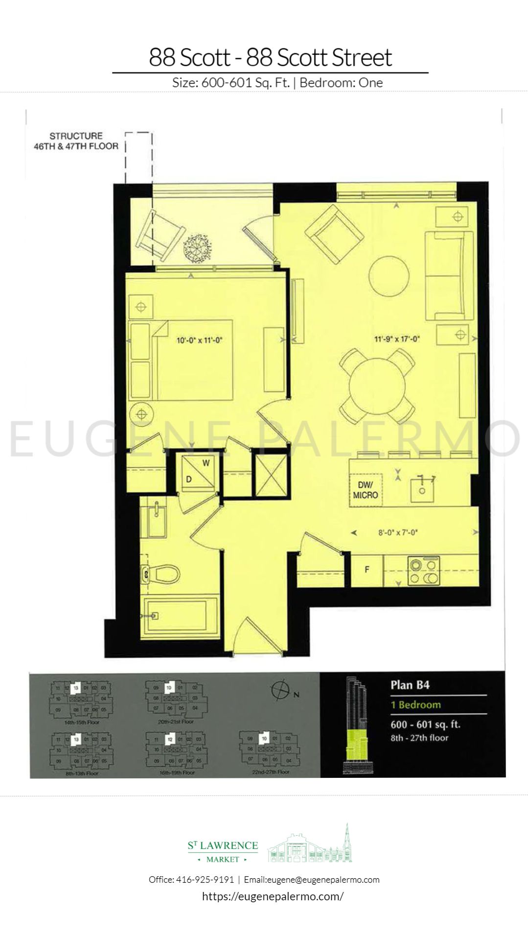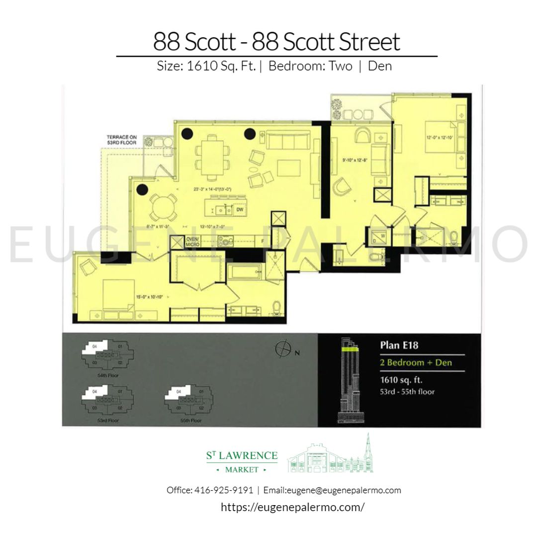 It's right in the heart of where it happens, amid the energetic buss of Toronto's downotwn Financial District. Located at the corner of Scott and Wellington Streets, 88 Scott connects you to the vibrancy of downtown living and to all its possibilites. To the very latest in culture, recreation, shopping and entertainment. To a cosmopolitan community of people on the move. To the nerve centre of this great country.