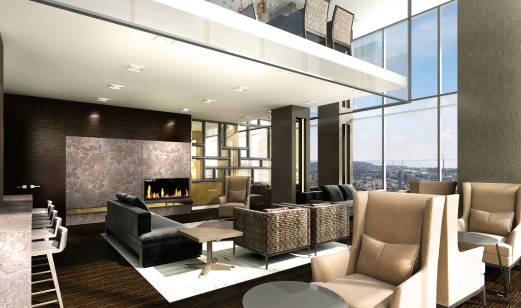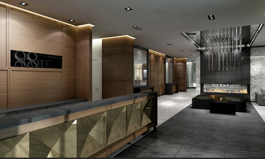 88 Scott’s captivating architecture (Page & Steele / IBI Group Architects) blends limestone and granite in its five-storey podium base with a soaring, 58-storey contemporary tower. The building is energy-efficient, and targeting LEED Gold status.
